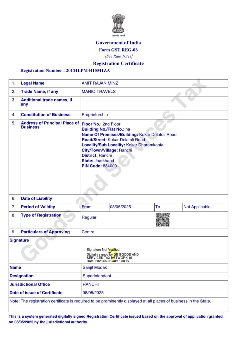 Contact : AMIT RAJAN MINZ (Proprietor)
